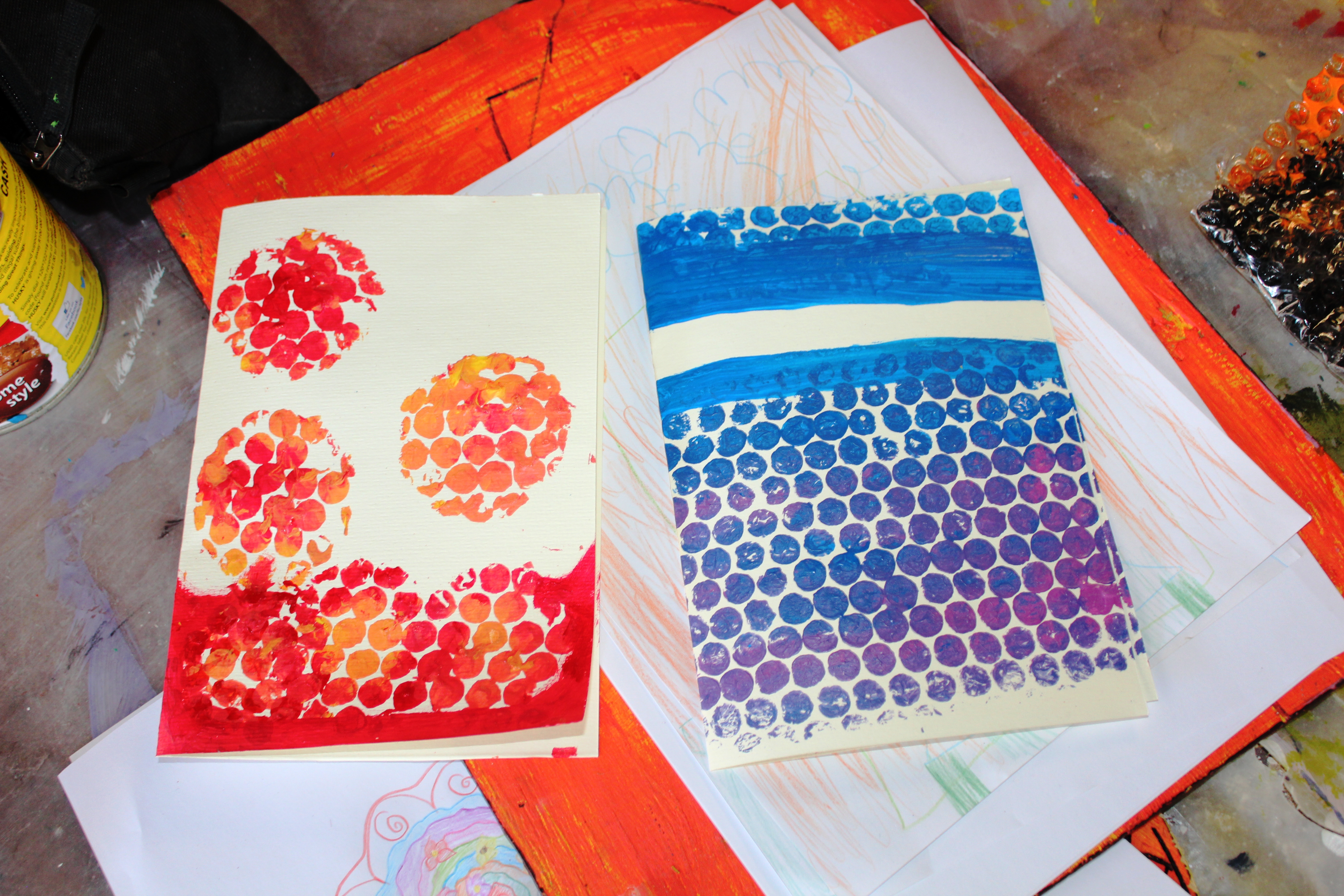 Bubble wrap printing was today. Tomorrow is Yarn printing. See pictures from today below:
