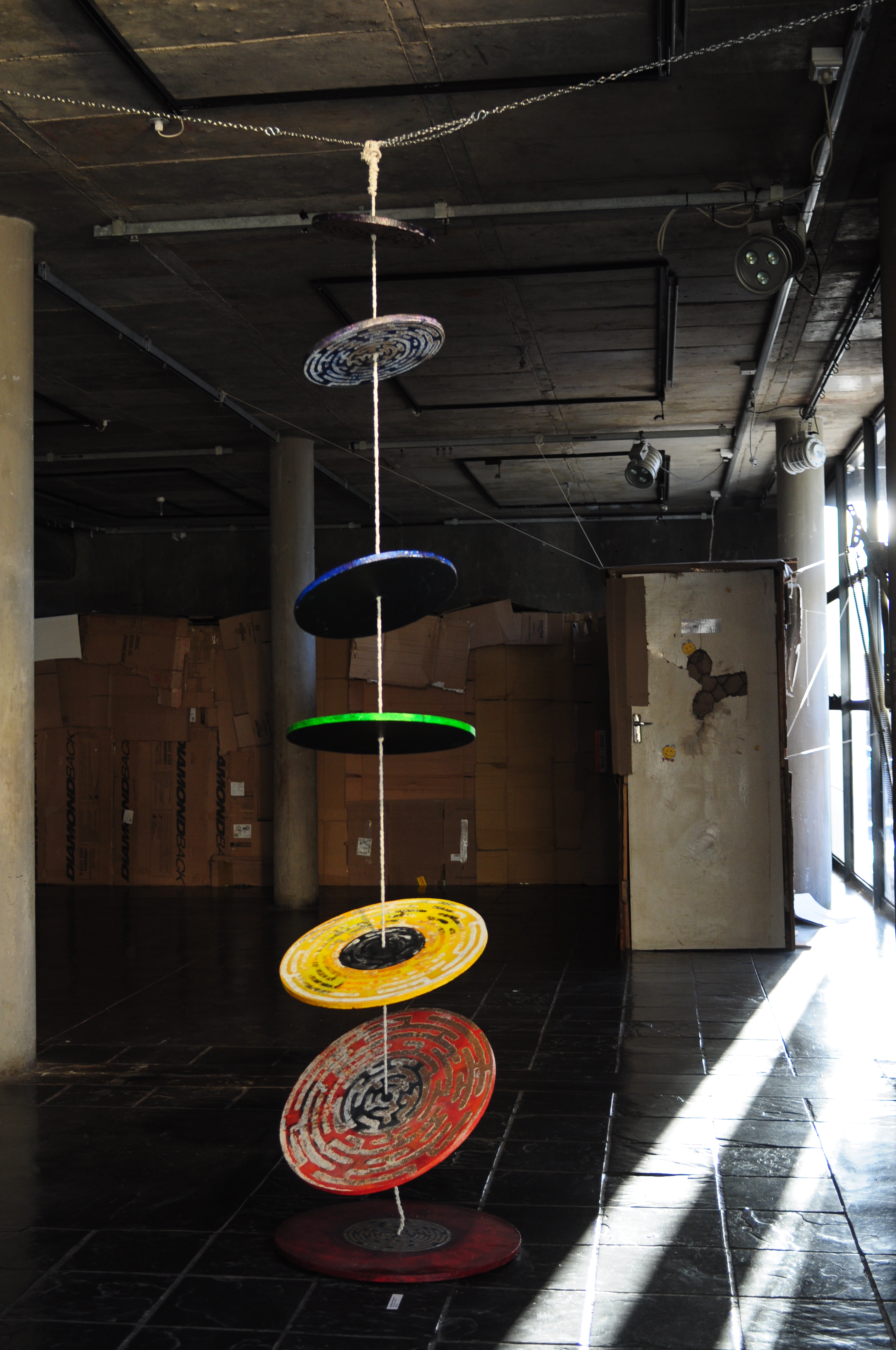 ‘Navigating the Energy Points’ – Multi-media installation, with Mulit-sensory Installation ‘Tunnel’ in the background Franco Namibian Cultural Centre, Windhoek, Namibia, 2015
