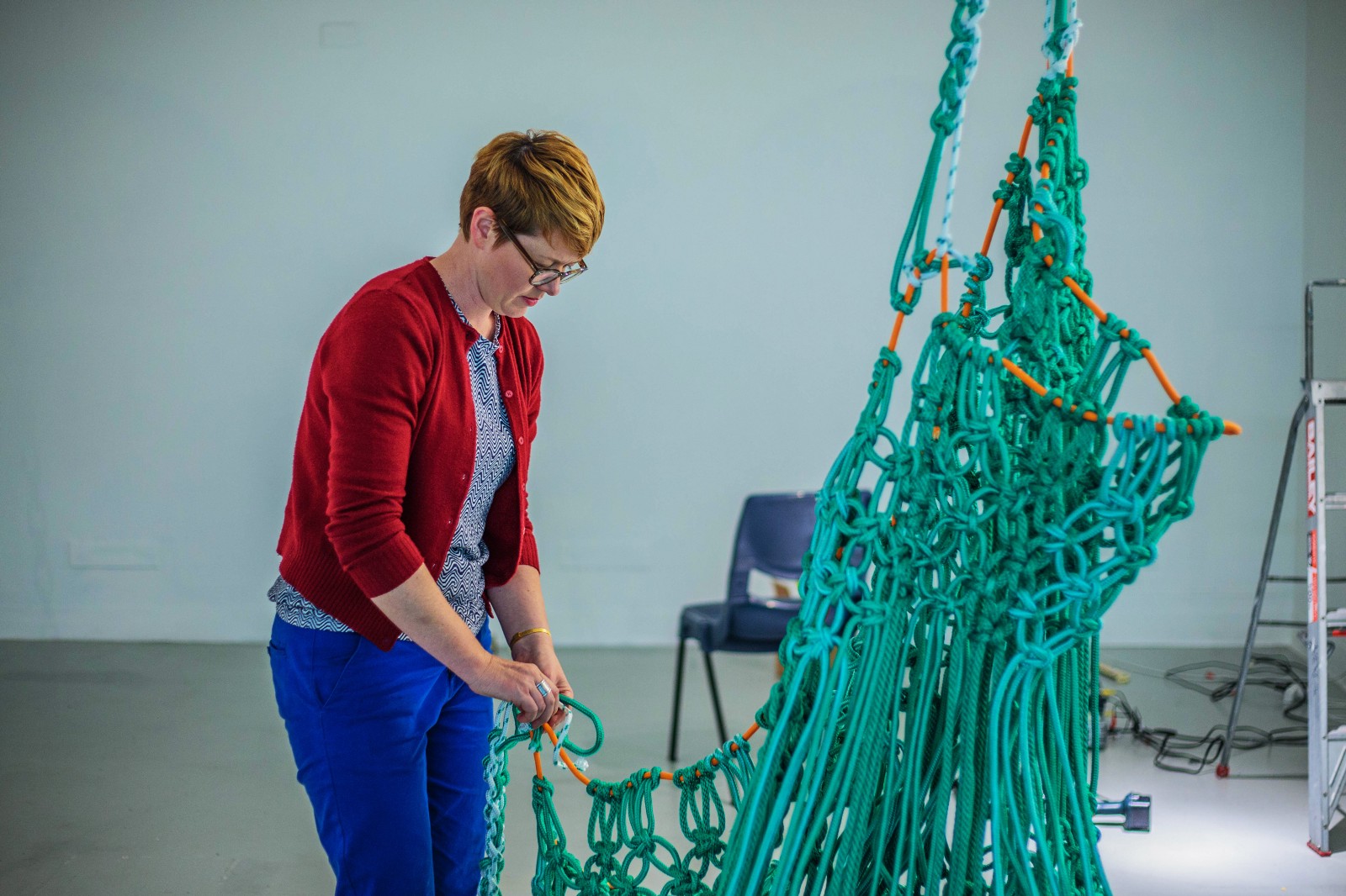 Central to the work of both these artists are the slow, repetitive processes by which they create their work. Knotted and woven pieces that take hours to create, performances that are feats of endurance both physically and mentally and the artists frequently challenge themselves by working in mediums and practices with which they are not always familiar, and timeframes that are not generous or lenient. These working methods are particularly suited to this collaboration, and it is this process that has given them the time to share and create the works in Back and Forth.