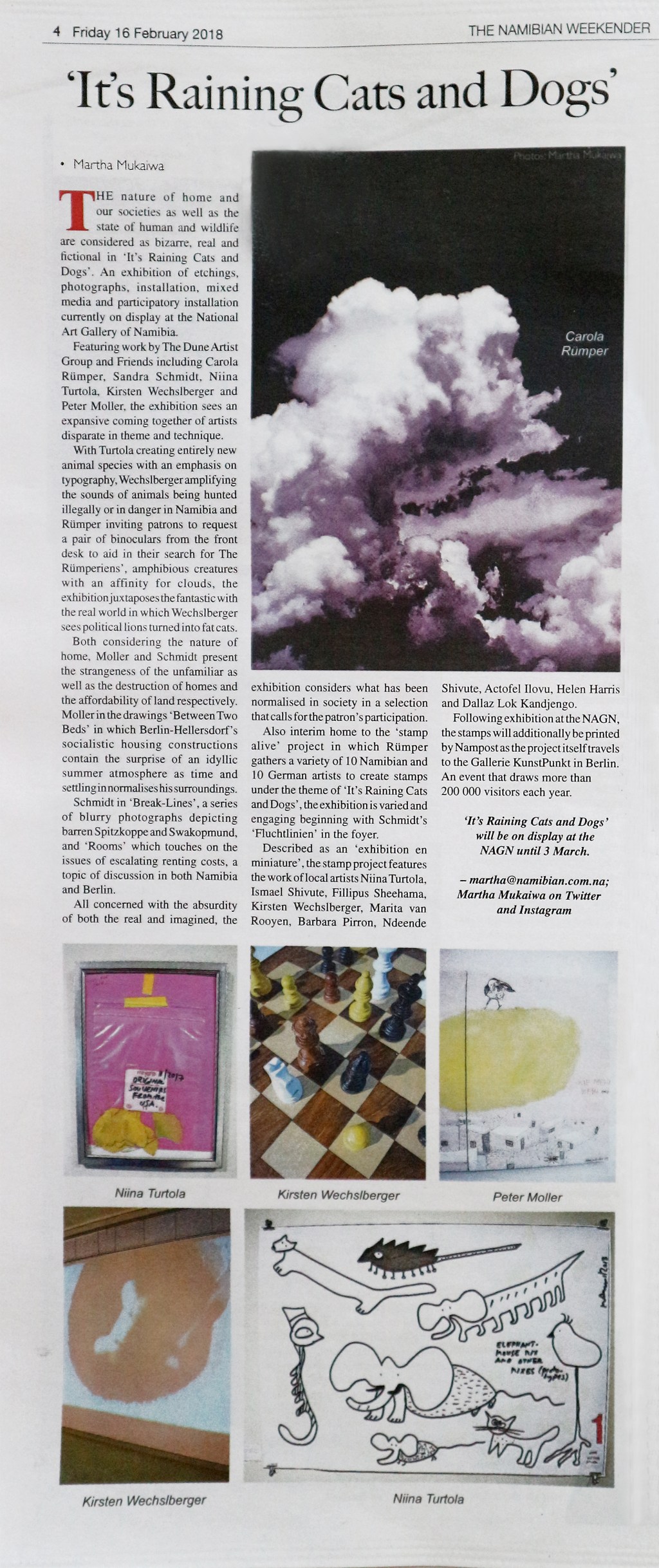 Article: The Namibian Newspaper ‘It’s Raining Cats and Dogs’ Exhibition 16.02.2018