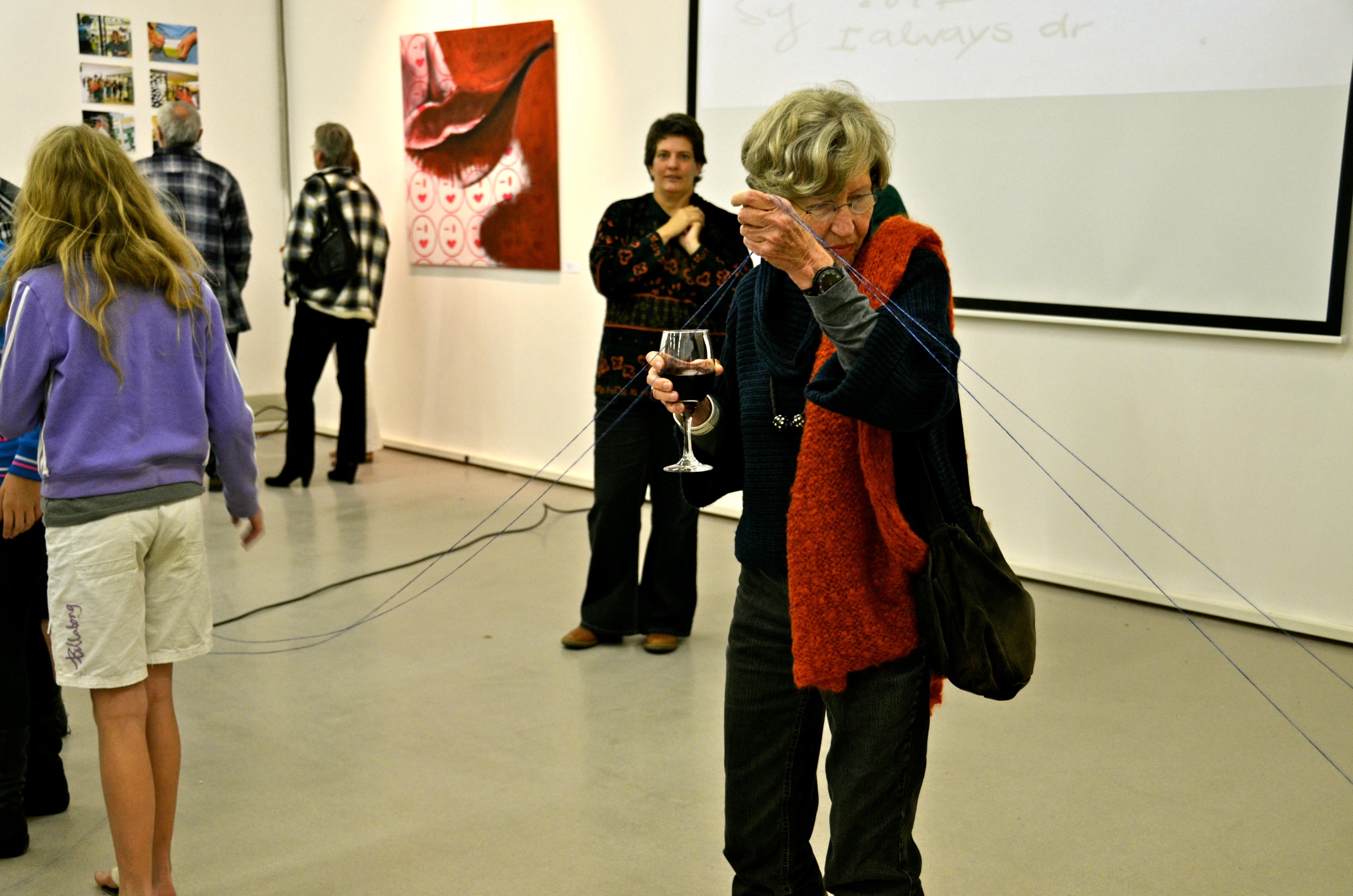 2012, ‘Connections’, Goethe-Centre Auditorium, Windhoek, Namibia. Audience at my exhibition were connected with string.
