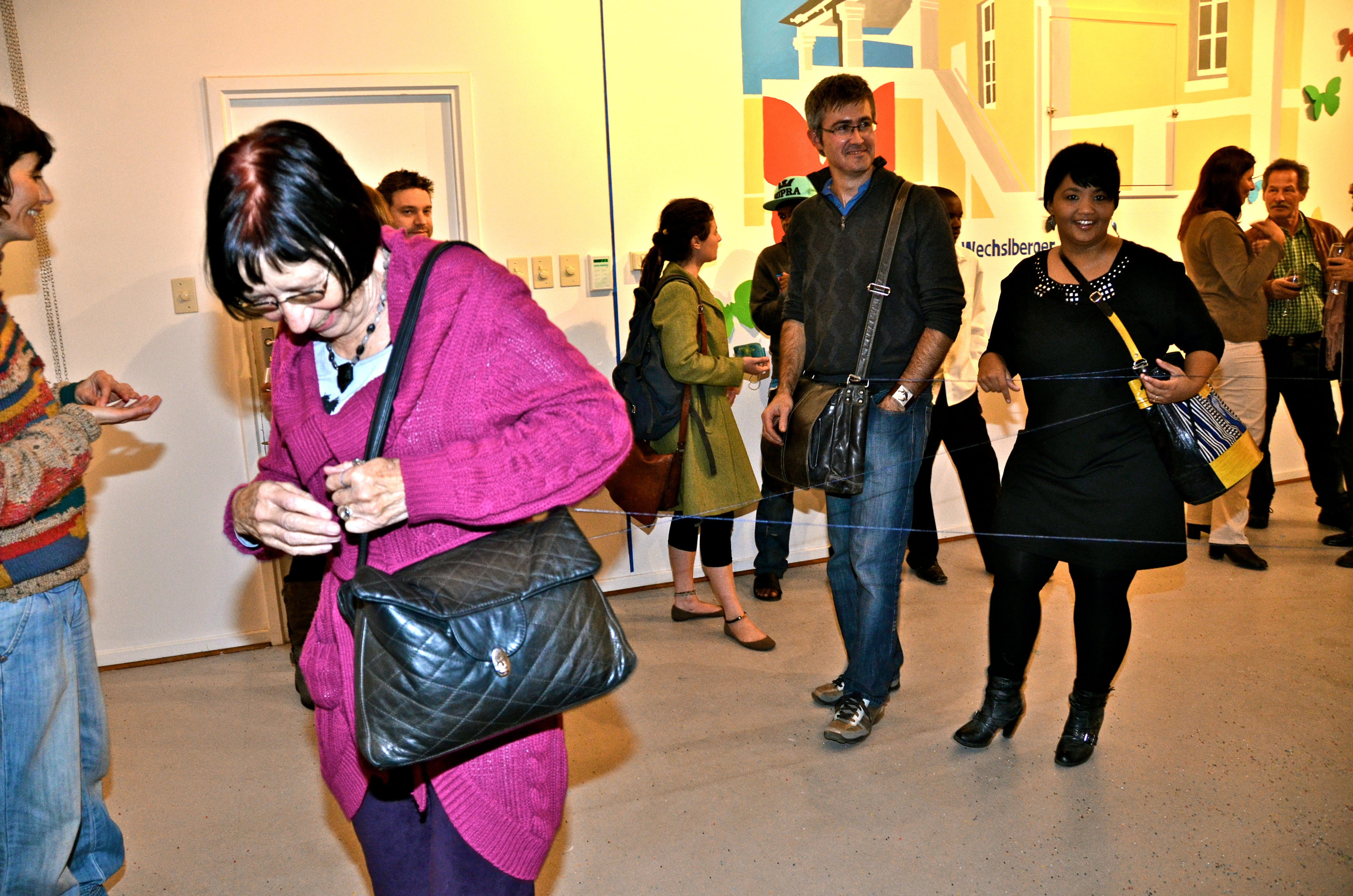 2012, ‘Connections’, Goethe-Centre Auditorium, Windhoek, Namibia. Audience at my exhibition were connected with string.