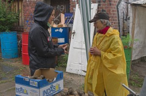 Discussing the bioplastic with spectator
