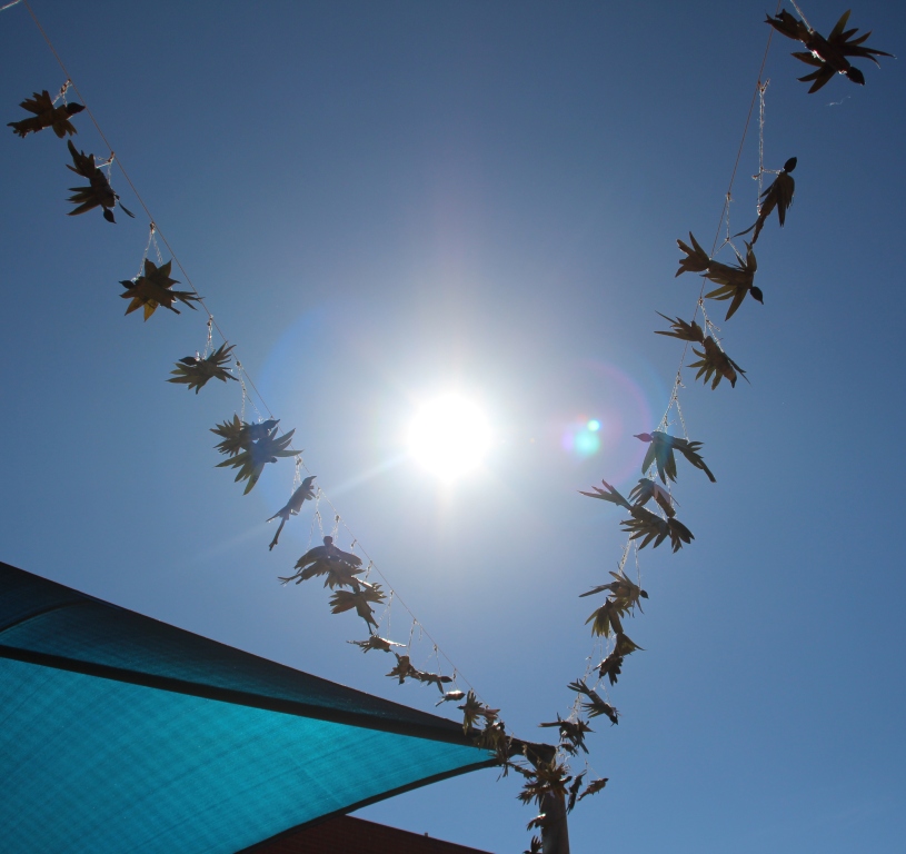 Children made doves with gum nuts, eucalyptus leaves, sticks and biodegradable string. Each dove had positive messages written on them that they would being to the world.